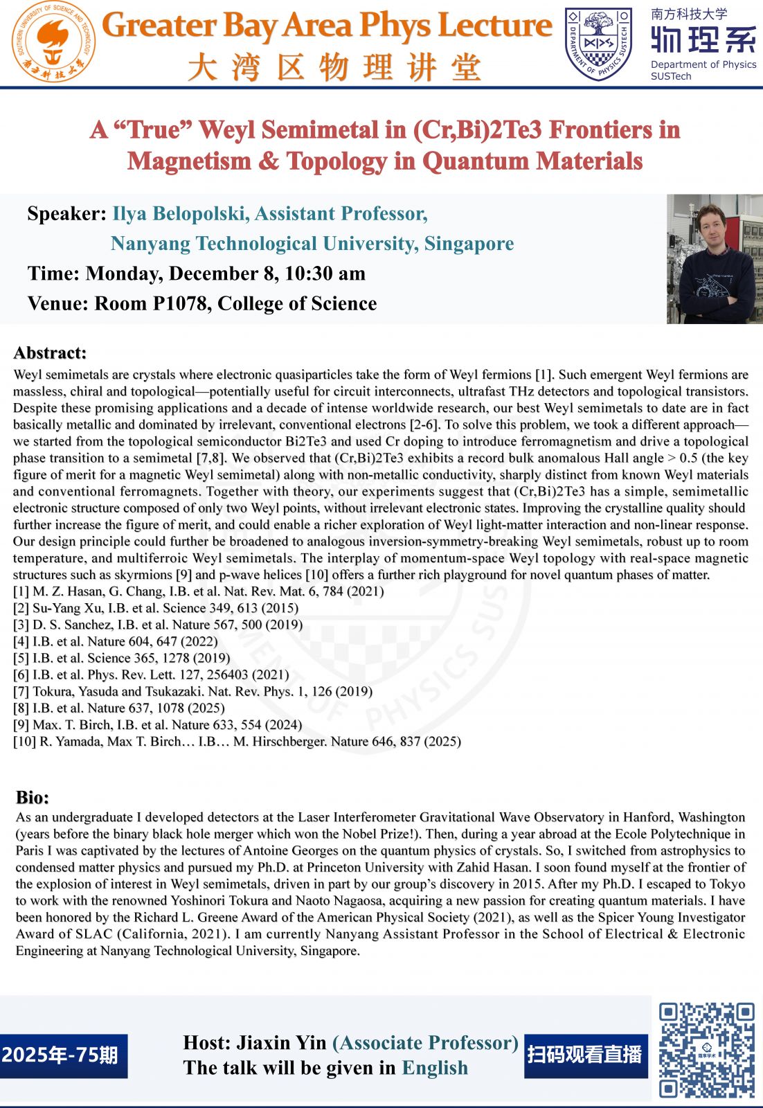 speaker:Ilya Belopolski, Assistant Professor, Nanyang Technological University, Singapore