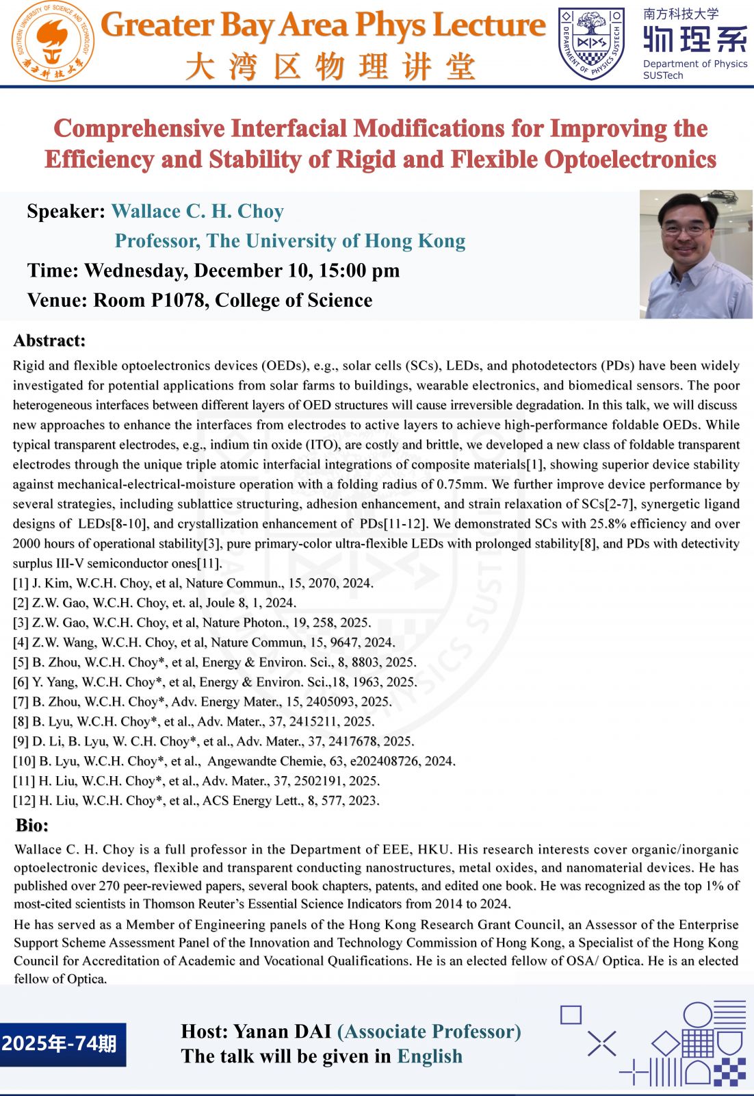 speaker:Wallace C. H. Choy, Professor, The University of Hong Kong