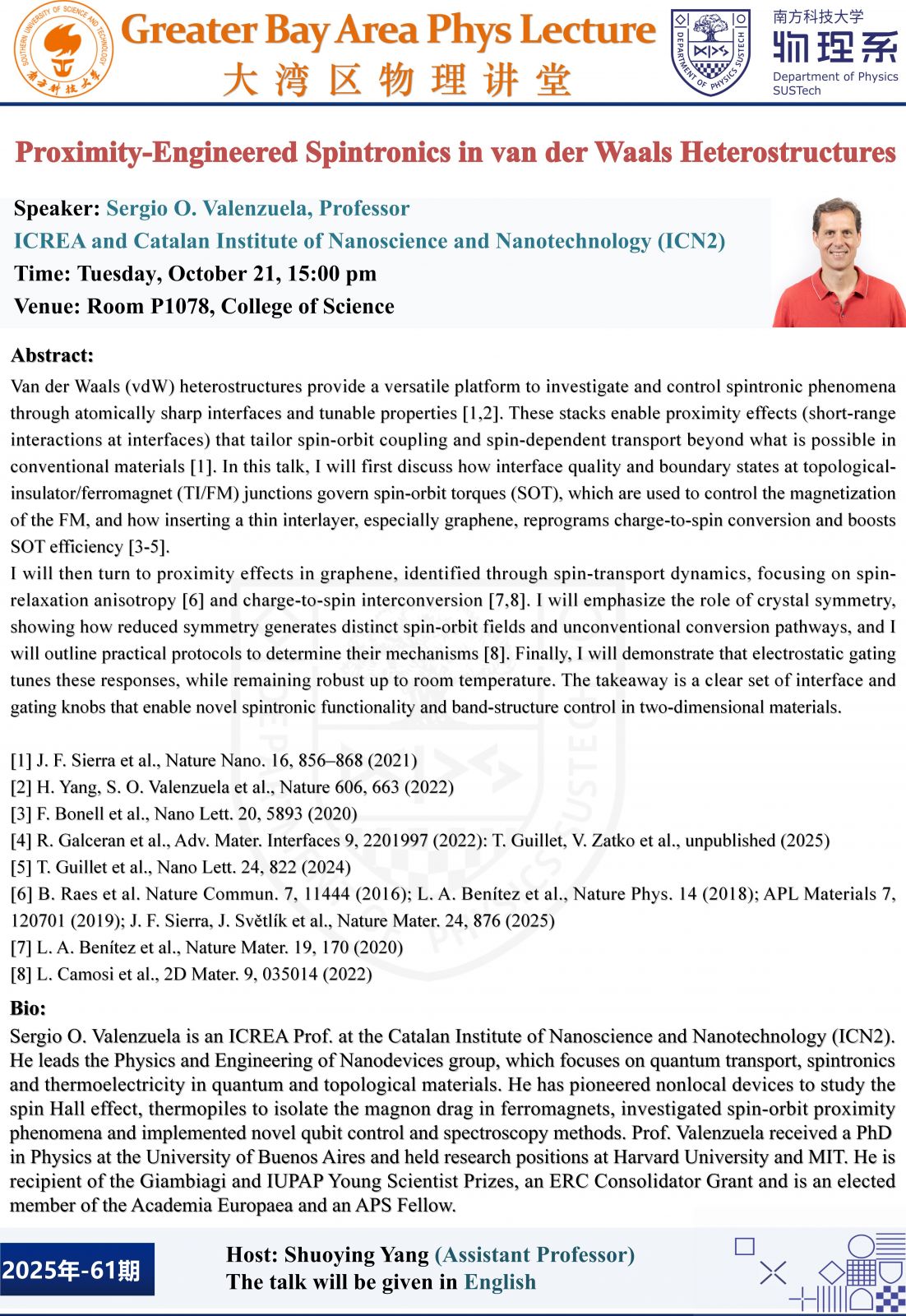 演讲者:Sergio O. Valenzuela, Professor,ICREA and Catalan Institute of Nanoscience and Nanotechnology (ICN2)